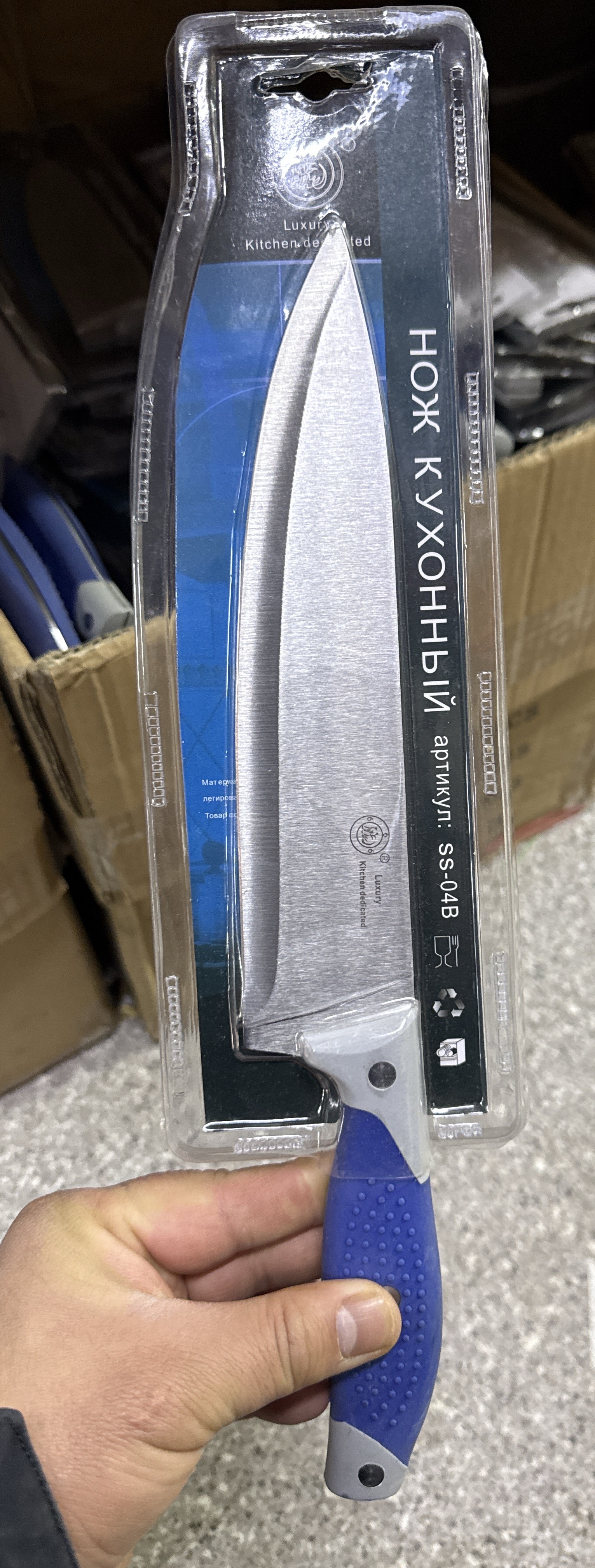 Нож синий блистер 04в