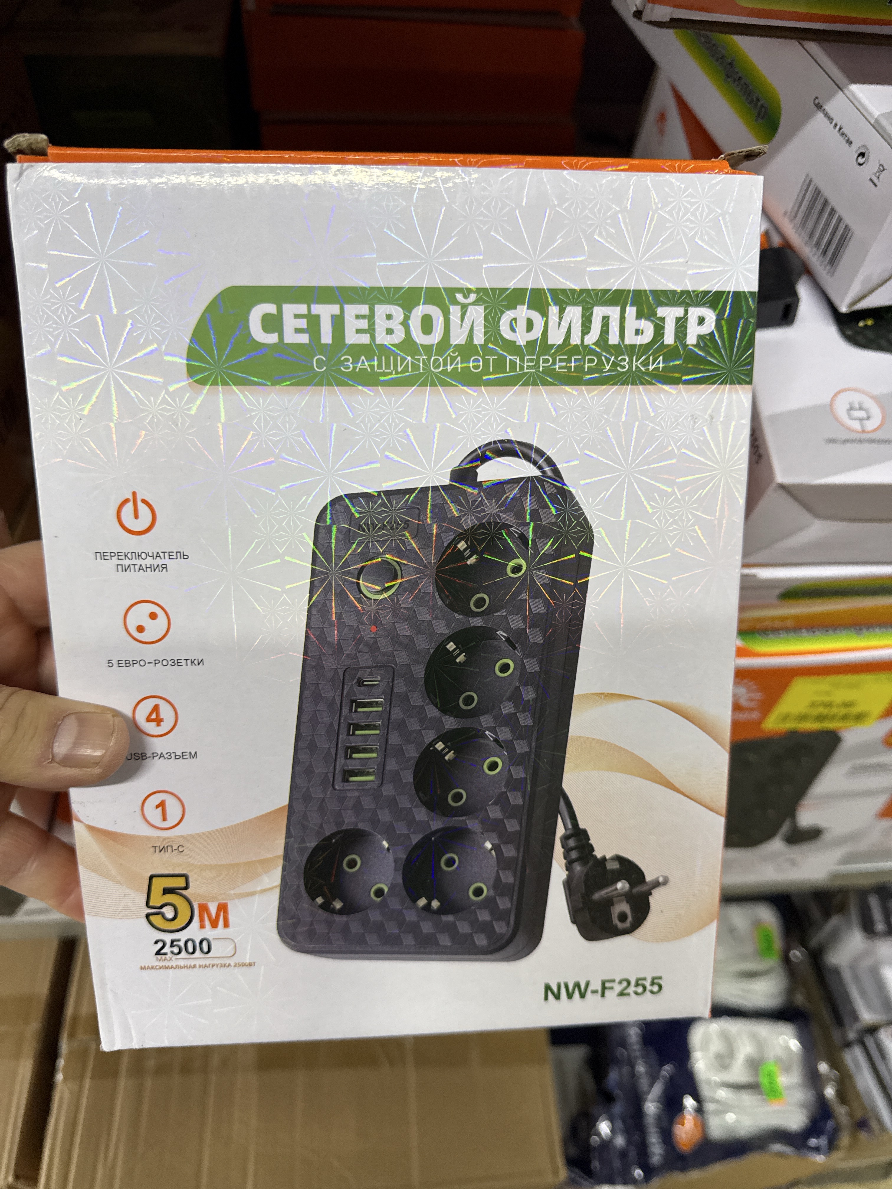 Переноска удлинитель сетевой фильтр 5-розеток NW-F255 5m 5м