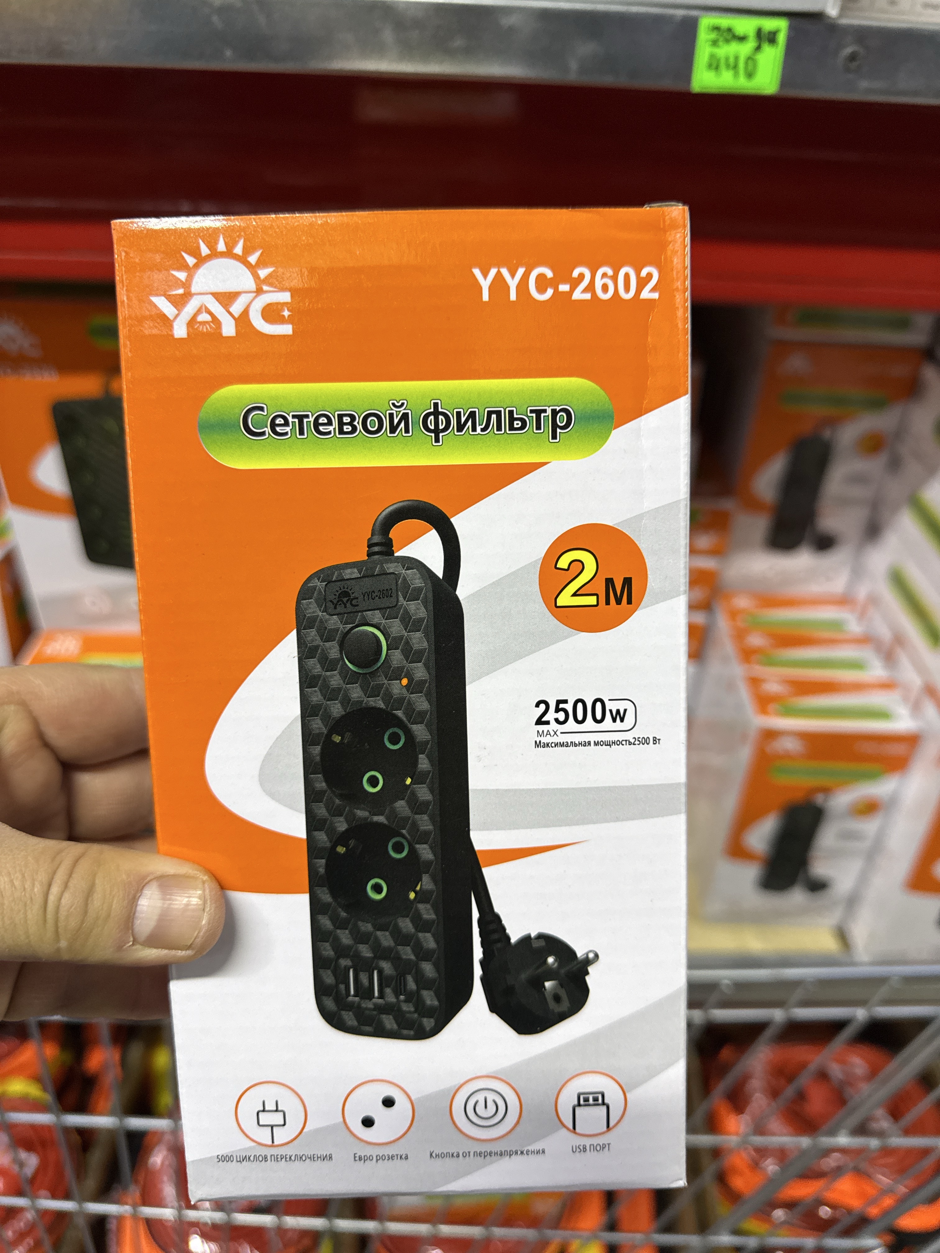 Сетевой удлинитель с 2 розетками, 2 USB и 1 Type-c разъёмами HG-2602