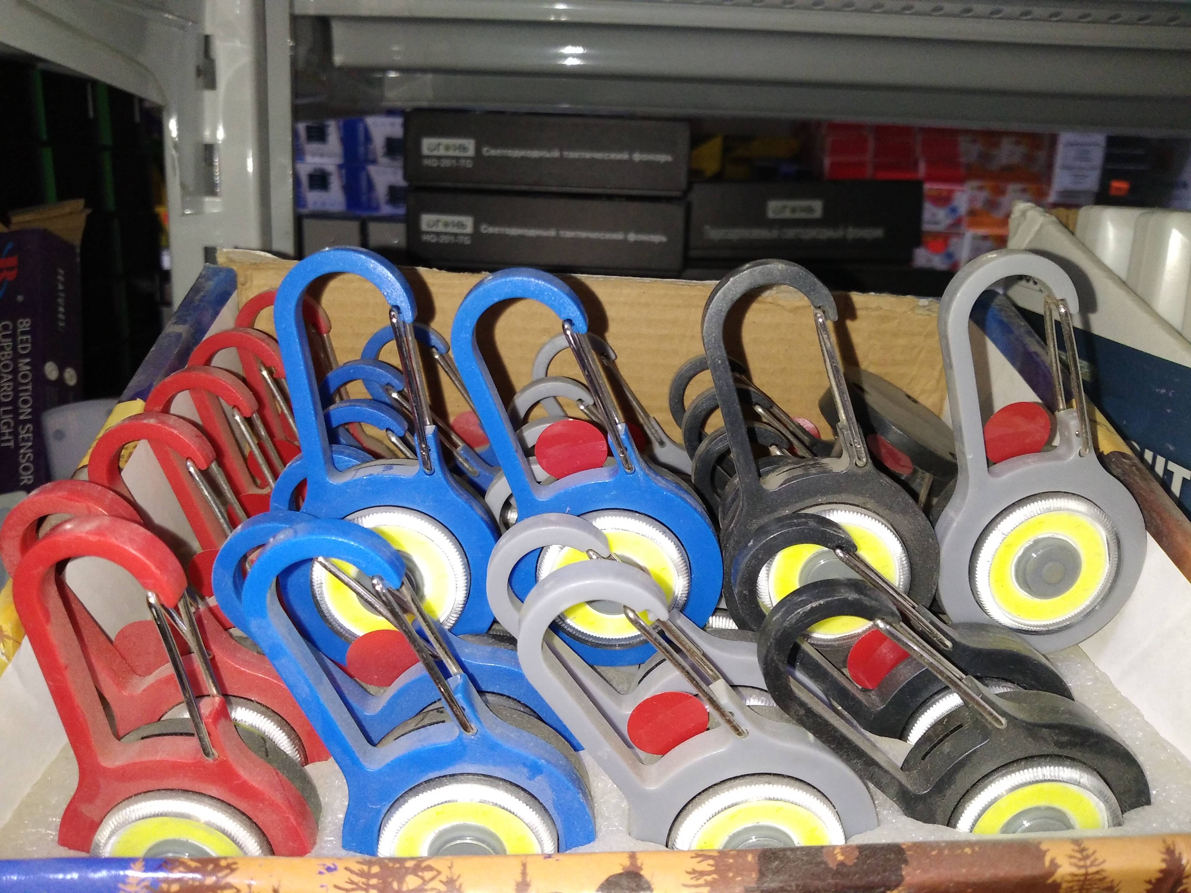 Светодиодный фонарик-брелок на карабине 168